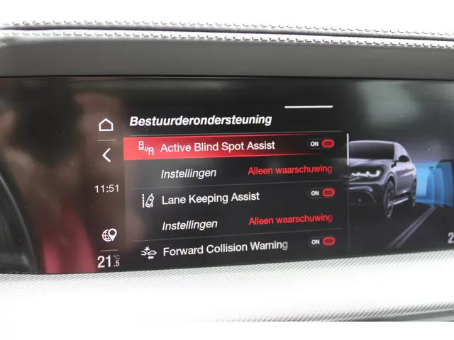 Ook op het gebied van technologie en veiligheid is deze Stelvio rijk uitgerust, met diverse geavanceerde rijassistentiesystemen die bijdragen aan een ontspannen en veilige rijervaring. Alles is erop gericht om bestuurder en inzittenden maximaal comfort en vertrouwen te bieden.