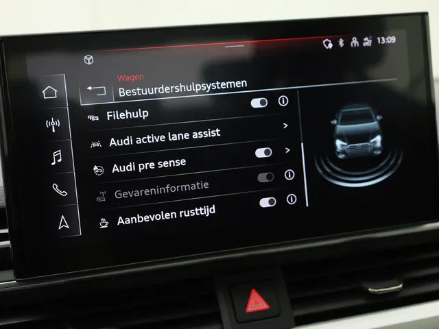 Zoals u mag verwachten van deze Audi A4 Limousine is hij uitgerust met een reeks aan actieve veiligheidssystemen. De camera van de verkeersborddetectie herkent verschillende soorten verkeersborden en toont deze op het dashboard. Het Lane-keeping systeem let constant op en waarschuwt of corrigeert als u onoplettend over de lijnen van de rijstrook gaat. Voor meer veiligheid detecteert deze auto het risico van een aanrijding tijdig via de forward collision warning. Dankzij veiligheidsvoorzieningen als hill hold functie, brake assist en bandenspanningcontrolesysteem, bent u steeds veilig onderweg.