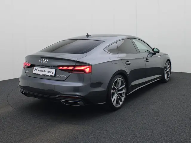 Bij Maas-De Koning doen we er alles aan om uw rijervaring zo aangenaam en zorgeloos mogelijk te maken. Bij de aanschaf van een dealeroccasion heeft u de vrijheid om te kiezen welk afleverpakket het beste aansluit bij uw wensen. Wij bieden twee pakketten: het Standaard pakket (inbegrepen) en het Approved pakket (tegen een meerprijs). Met het Approved pakket kiest u voor extra zekerheid, zoals minimaal 12 maanden garantie en een onderhoudsvrije periode van 6 maanden of 7.500 km na aflevering. Zo geniet u van maximale gemoedsrust. U bepaalt zelf welke zekerheid en service u nodig heeft, terwijl wij ervoor zorgen dat uw voertuig technisch volledig wordt klaargemaakt volgens uw voorkeuren.Een auto is meer dan een vervoermiddel. De juiste auto kan uw leven verrijken, door zijn comfort, zijn smaakvolle vormgeving en door de rijervaring die hij biedt. Dat geldt bijvoorbeeld voor deze Audi A5 Sportback, die uitblinkt door zijn design maar vooral ook om zijn rijkwaliteiten. Een hoogtepunt uit de specificatielijst van deze auto is de sportieve S-Line styling. In deze auto vindt u een benzinemotor en een automatische transmissie. De leren bekleding straalt klasse en goede smaak uit. Deze Audi A5 Sportback heeft verwarmbare voorstoelen, voor zowel bestuurder als bijrijder. In deze sportstoelen voel je je één met je auto. Een praktische extra is de elektrisch bedienbare achterklep die opent en sluit met een druk op de knop. De verlichting van de koplampen geeft het gevoel dat het altijd dag is. De slimme matrix LED-technologie past zich aan bij tegenliggers, zonder verlies van lichtkwaliteit. Ook 19 inch lichtmetalen velgen, sportonderstel, adaptief dempingsysteem, warmtewerend glas, in delen neerklapbare achterbank en LED-achterlichten zijn aan boord.