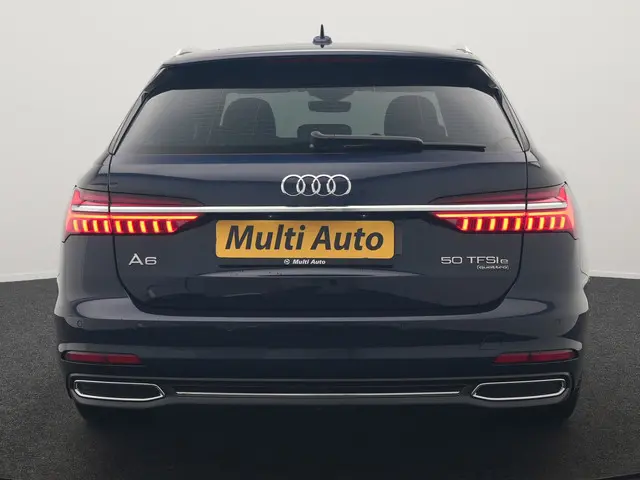 Audi A6 Avant 50 TFSI e quattro S Line Plug In Hybrid 300pk Dealer O.H. PHEV | Trekhaak Af Fabriek | Adaptive Cruise | Head Up | 360 Camera | Alcantara Sportstoelen Verwarmd | Stuur Verwarmd | Apple Carplay | Navigatie | Virtual | DAB |Kwaliteit komt nooit tekort in Duits vakmanschap, dat is te zien aan deze Audi A6 Avant met zijn stijlvolle ontwerp en comfortabele interieur. En heel aantrekkelijk is de stoere, sportieve S-Line styling. Het is vermeldenswaard dat deze auto maar 32101 kilometer heeft gereden sinds 2022. Mooier kan het eigenlijk niet: de combi van elektromotor en verbrandingsmotor. Met deze hybride Audi A6 Avant kunt u alle kanten op. U wilt comfort? Die is er, met het lederen interieur. U wilt gemak? Kijk dan even naar de elektrisch bedienbare achterklep. Stoelverwarming maakt het leven in deze auto aangenaam op koude en winterse dagen. Tot de uitrusting behoren ook 19 inch lichtmetalen velgen, LED koplampen, sportonderstel, halflederen bekleding, warmtewerend glas en zwarte hemelbekleding.