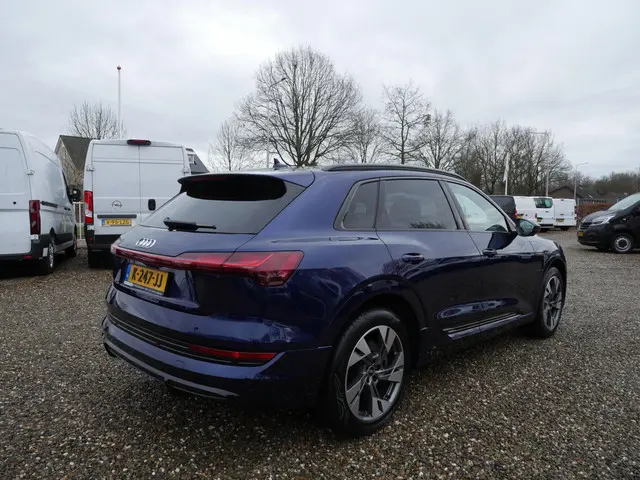 Efficiënte techniek en ongekende dynamiek. Het plezier van elektrisch rijden gaat in deze Audi e-tron samen met een spaarzaam stroomverbruik. De elektromotor laat u geluidloos over de weg gaan. Wat een verademing, en zoveel power ook nog! De S-Line styling van deze auto is zowel smaakmakend als spraakmakend. Perfecte rij-ervaring? Dat is voor een groot deel te danken aan het gemak en de eigenschappen van de luchtvering. 's Winters op pad gaan kan een behoorlijke uitdaging zijn. Daarom is deze Audi e-tron voorzien van weldadige verwarmbare voorstoelen. Goeie looks? Jazeker! Maar de sportstoelen zorgen ook voor een goed gesteunde en comfortabele zit. Volop licht en ruimtelijk gevoel geeft het elektrische bediende glazen panoramadak. De elektrisch bedienbare achterklep opent met een druk op de knop. De verlichting van de koplampen geeft het gevoel dat het altijd dag is. De slimme matrix LED-technologie past zich aan bij tegenliggers, zonder verlies van lichtkwaliteit. Ook is de auto voorzien van: 20 inch lichtmetalen velgen, adaptief dempingsysteem, warmtewerend glas, in delen neerklapbare achterbank, LED-achterlichten en verstelbare lendensteunen.