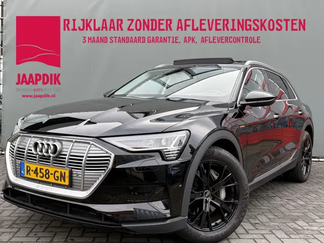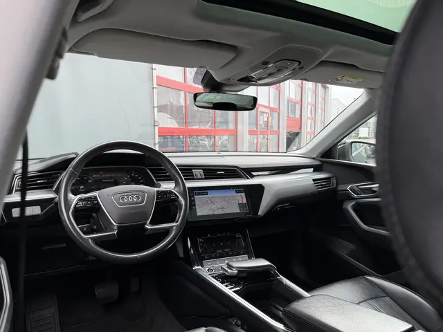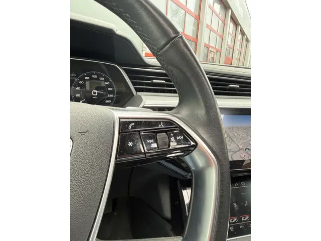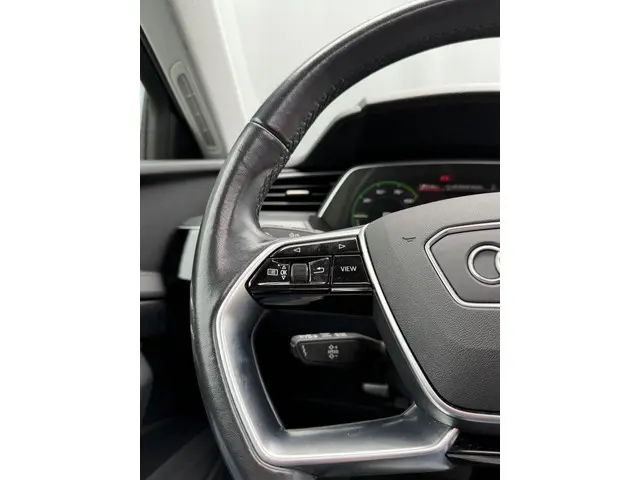 Kijk naar de geraffineerde lijnen. Verbaas u over de soepele aandrijftechniek. De elektrische Audi e-tron trakteert u op een onvergelijkbare rijervaring. De elektromotor laat u geluidloos over de weg gaan. Wat een verademing, en zoveel power ook nog! Een krachtige motor geeft deze auto zijn sportieve prestaties. Luchtvering zorgt voor een onovertroffen comfort tijdens het rijden. In de verwarmbare voorstoelen zitten is elke keer een welkom gevoel. Een heerlijk zonnetje, of indrukwekkende wolkenpartijen? Bekijk ze onbelemmerd door het elektrisch bediende glazen panoramadak. Een handige voorziening op deze auto is de elektrische achterklep die u op afstand kunt openen. Tot de uitrusting behoren ook 19 inch lichtmetalen velgen, LED koplampen, adaptief dempingsysteem, warmtewerend glas, in delen neerklapbare achterbank en LED-achterlichten.Rij- en route-info wordt perfect in beeld gebracht door het digitale dashboard. Ook achter de auto geen verrassingen bij het inparkeren. Daarvoor zorgt de achteruitrijcamera. Navigatie, onderhoudsstatus, vergrendeling, audio... de mogelijkheden van remote services zijn haast oneindig. Ook deze auto laat zich bedienen en analyseren via uw smartphone! De bediening van het audio-installatiesysteem en het navigatiesysteem gebeurt met knoppen op het stuur en als u wilt zelfs met uw stem. De audio is overigens voorzien van DAB-radio voor een altijd heldere ontvangst. Het spreekt voor zich dat een auto als deze ook van automatische airconditioning is voorzien. De uitrusting van deze Audi is met WIFI-hotspot, regensensor, cruise control, automatisch dimmende binnenspiegel, isofix-aansluiting en usb-aansluiting behoorlijk compleet.