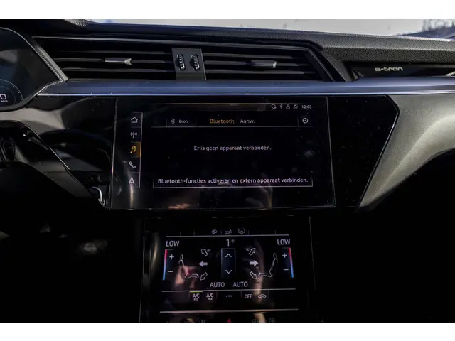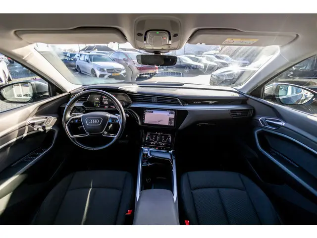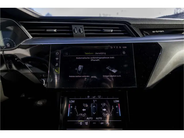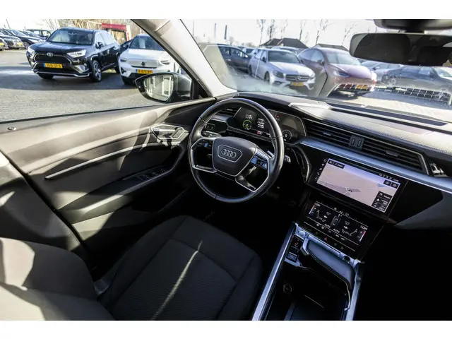 Audi heeft een uitstekende reputatie opgebouwd als het gaat om betrouwbare elektrische auto's. Kiest u voor deze e-tron, dan kiest u voor degelijke techniek van topklasse. Schoon, stil en fiscaal vriendelijk: met de elektromotor is het zuinig zoeven! Een krachtige motor geeft deze auto zijn sportieve prestaties. Ribbels en hobbels in de weg worden royaal gladgestreken door de aanwezige luchtvering. Tot de voorzieningen van deze auto behoren elektrisch verstelbare passagiersstoel, 20 inch lichtmetalen velgen, LED koplampen, warmtewerend glas, in delen neerklapbare achterbank en LED-achterlichten.Het digitale dashboard ondersteunt u voortdurend met actuele, bruikbare informatie. Appen met uw auto? Geen probleem. U kunt van overal contact opnemen, de functies controleren en activeren. U bedient 'm met remote services. Onderweg kunt u veilig genieten van het audio-installatiesysteem en het navigatiesysteem met harde schijf. Want in deze Audi bedient u ze vanaf het stuurwiel of met uw stem. Electronic climate control verwarmt of koelt het interieur met een druk op de knop. De parkeersensoren vertellen precies hoe ver u kunt gaan. Hoe dichter op een obstakel, hoe sneller de piepjes. Ook schakelpaddles aan het stuur, regensensor, cruise control, automatisch dimmende buitenspiegels en centrale deurvergrendeling met afstandsbediening zijn aan boord.