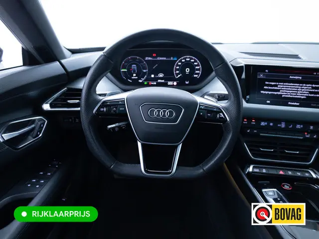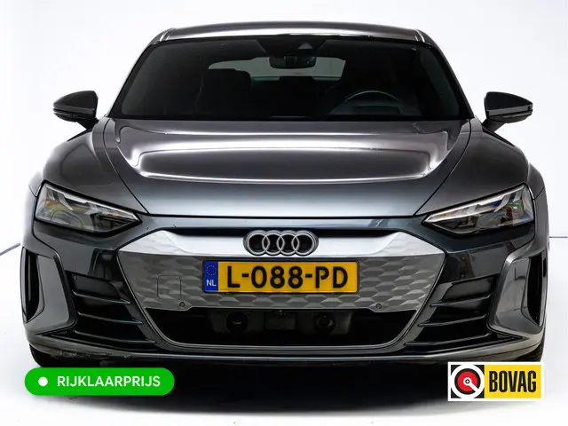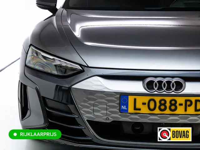 Hij levert uitstekende prestaties en doet dat met zorg voor het milieu. Maar tegelijk is de Audi e-tron GT ook gewoon een auto die u volop ruimte en comfort biedt. Dit is een auto uit het bouwjaar 2021, hij heeft 113768 kilometer gelopen. Gas geven is er met de elektromotor niet meer bij. Stil snelheid maken wel! Deze dealeronderhouden auto is van de eerste eigenaar. Een krachtige motor geeft deze auto zijn sportieve prestaties. Even op het knopje drukken en de elektrisch bedienbare achterklep gaat open. Net zo gemakkelijk als het elektrisch bediende glazen panorama dak. Op koude en donkere dagen zijn de verwarmbare voorstoelen een uitkomst. De sportstoelen geven het interieur van deze e-tron GT een super strakke en sportieve uitstraling. De luchtvering biedt stabiliteit onder alle wegcondities. Verder is de Audi uitgerust met: 20 inch lichtmetalen velgen, LED koplampen, adaptief dempingsysteem, warmtewerend glas, in delen neerklapbare achterbank en LED-achterlichten.Het digitale dashboard vertelt u onderweg alles dat bijdraagt aan een veilige, efficiënte rit. Met adaptive cruise control houdt de auto zelfstandig afstand tot uw voorligger. Een veiligheidsverhogende optie waarmee u comfortabel onderweg bent. De aanwezige file assistent meet de afstand tot uw voorligger en zorgt voor een veilige afstand. Staat het voor u opeens stil? Dan zorgt het systeem dat de auto ook stopt. Uw smartphone wordt een dashboard, met alle functies in beeld. Dankzij Connected Services en de speciale app. Voor de veiligheid op de weg is het goed dat u uw ogen op de weg kunt houden en uw handen aan het stuur. Want het audio-installatiesysteem, met DAB-ontvangst, en het full map navigatiesysteem bedient u vanaf het stuurwiel en met spraakbediening. Ook kruisend verkeer detectie, electronic climate control, schakelpaddles aan het stuur, parkeersensoren achter, regensensor en automatisch dimmende buitenspiegels horen tot de voorzieningen op deze auto.