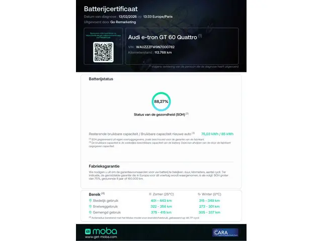 Bruikbare accucapaciteit: 88.35 kWh