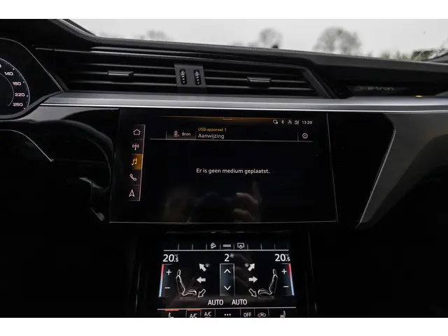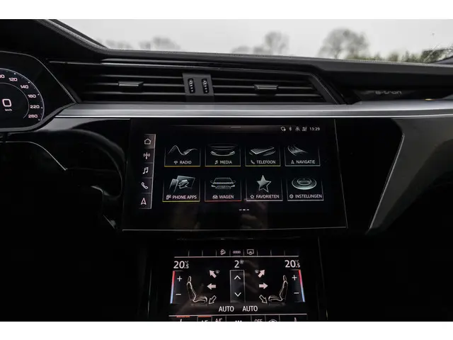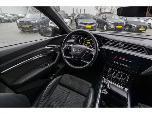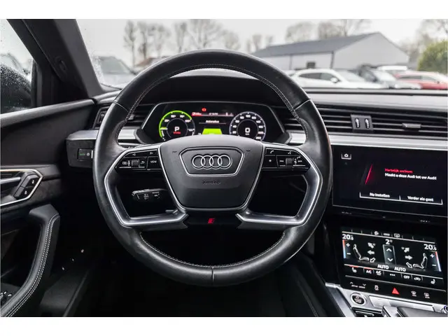 Stijlvol design en topprestaties zonder emissies. Deze Audi e-tron Sportback verbindt elegante lijnen met krachtige elektrische aandrijving zonder schadelijke uitstoot. Power, stilte en nul procent uitlaatgas krijgt u met de elektromotor. Sportief, stoer en net even anders dan anders, mede dankzij de S-Line styling. De auto is van het bouwjaar 2020 en is van de eerste eigenaar. Een krachtige motor geeft deze auto zijn sportieve prestaties. Laat de zon maar schijnen door het elektrisch bediende glazen panorama dak en hou een handje over dankzij de elektrisch bedienbare achterklep. Niks vergeten? O ja toch: het lederen interieur moeten we zeker even noemen. Neem plaats op de comfortabele stoelen. Dankzij de elektrische bediening en het geheugen is het eenvoudig om hierin de beste zitpositie te vinden. Het maakt niet uit hoe slecht het wegdek is. De luchtvering strijkt alle oneffenheden glad. Bij de zeer complete uitrusting van deze auto behoren ook 20 inch lichtmetalen velgen, LED koplampen, adaptief dempingsysteem, zwarte hemelbekleding, donker getint glas achter en in delen neerklapbare achterbank.Nooit meer beslagen ramen of ramen krabben. Met deze auto bent u altijd klaar voor de winter dankzij de standkachel. Uw rit wordt comfortabel en veilig gemaakt door het digitale dashboard dat alles projecteert wat u wenst in de digitale wereld van mobiliteit. Altijd achter zicht, nooit meer nekkramp! De achteruitrijcamera maakt het supermakkelijk. Als u de adaptive cruise control inschakelt, regelt de auto zelf de snelheid en de afstand tot de auto voor u. De aanwezige file assistent meet de afstand tot uw voorligger en zorgt voor een veilige afstand. Staat het voor u opeens stil? Dan zorgt het systeem dat de auto ook stopt. U bent in deze Audi ook voorzien van dashboard met spraakbediening, connected drive services, full map navigatiesysteem, WIFI-hotspot, kruisend verkeer detectie en automatische airconditioning.