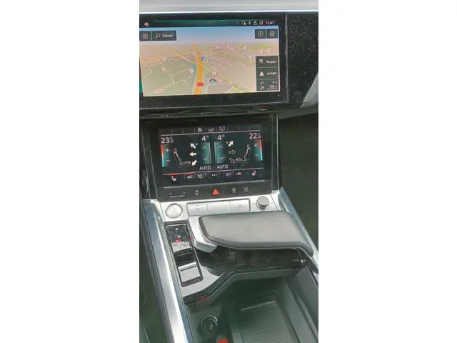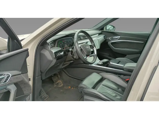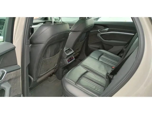 U voelt de onbeperkte kracht van elektrische aandrijving, elke keer als u op weg gaat met deze Audi e-tron Sportback. De voordelen van de elektromotor spreken voor zich: stil, schoon en snel! Exclusiviteit en sportiviteit komen samen in de S-Line styling. Een krachtige motor geeft deze auto zijn sportieve prestaties. Een eyecatcher is het lederen interieur. Maar onderschat ook het voordeel van een aantal 'kleine' details niet, zoals het elektrisch bediende glazen panorama dak en de elektrisch bedienbare achterklep. Een koude start op frisse dagen? Niet met de behaaglijke stoelverwarming. Op ieder wegdek een rimpelloze wegligging: dat is het voordeel van luchtvering. Ook achterin heerst een luxe sfeer, vanwege de verwarmde achterbank. Ook 20 inch lichtmetalen velgen, LED koplampen, adaptief dempingsysteem, warmtewerend glas, LED-achterlichten en verstelbare lendensteunen zijn aan boord.