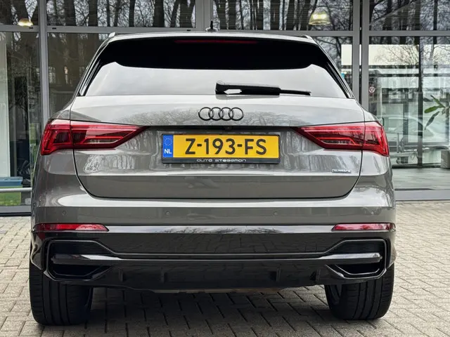 Dit is niet zomaar een Audi Q3. De hoge prestaties van de motor, het strak afgestelde onderstel en de uitgekiende verhoudingen van de transmissie staan garant voor bergen rijplezier. Deze auto heeft 128072 kilometer op de teller staan, het bouwjaar is 2019. Een beetje meer aandacht en een stoere uitstraling? Daar zorgt de S-Line styling voor. In deze auto vindt u een benzinemotor en een automatische transmissie. Ga samen met uw bijrijder lekker zitten in de verwarmbare voorstoelen. Comfortabel zitten, ook als de rit onstuimig is? Dat kan met de sportstoelen. Het interieur lijkt groter en ruimtelijker dankzij het elektrisch bedienbare glazen panoramadak. De achterklep opent automatisch met een druk op de knop. Handig als u met volle handen staat. De geavanceerde matrix LED-verlichting in de koplampen levert maximaal helder zicht en past zich subtiel aan zodra er een tegenligger komt. Zonder lichtkwaliteitsverlies! In deze auto profiteert u onder andere ook van: 20 inch lichtmetalen velgen, sportonderstel, halflederen bekleding, warmtewerend glas, in delen neerklapbare achterbank en LED-achterlichten.