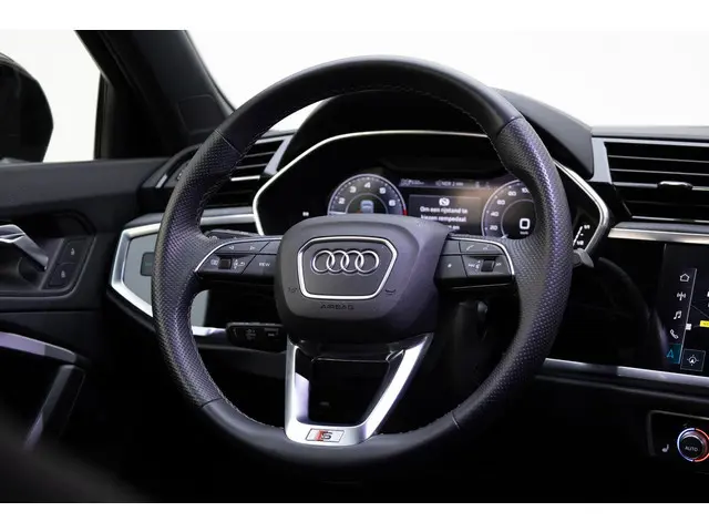 Duitse automerken staan bekend om hun innovatiekracht, topkwaliteit en uitstekende prestaties. Zo ook bij deze Audi Q3 Sportback. Een en al Duitse klasse. Met de S-Line styling trek jij op een positieve manier de aandacht. De hybride combi van een verbrandingsmotor en een elektromotor zorgt voor zeer laag brandstofverbruik en veel minder uitstoot. Deze Audi Q3 Sportback heeft verwarmbare voorstoelen, voor zowel bestuurder als bijrijder. Rijden met pit? Geen punt! De sportstoelen geven steun en stevigheid! Bij de uitrusting van deze Audi horen onder meer 18 inch lichtmetalen velgen, Full LED koplampen, warmtewerend glas, in delen neerklapbare achterbank, LED-achterlichten en verstelbare lendensteunen.Het digitale dashboard rekent mee, denkt mee en rijdt mee. Alle info overzichtelijk in beeld, overal. Zelfs een kleine aanrijding kan flinke kosten veroorzaken. Gelukkig laat de achteruitrijcamera precies zien wat er zich achter de auto bevindt en geeft een waarschuwingssignaal. Adaptive cruise control houdt de ingestelde snelheid vast en houdt automatisch afstand tot jouw voorligger. Met je smartphone maak je overal contact met de auto. Remote services geven direct inzicht in uiteenlopende functies en zijn op afstand te activeren. Kies de muziek waarvan jij houdt, dankzij de DAB-radio klinkt het altijd geweldig. Intussen bedien je het audio-installatiesysteem en het navigatiesysteem met harde schijf met de knoppen op het stuur. En deze auto heeft ook electronic climate control, lederen sportstuur, regensensor, automatisch dimmende binnenspiegel en centrale deurvergrendeling met afstandsbediening als standaard uitrusting.