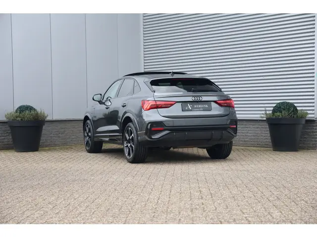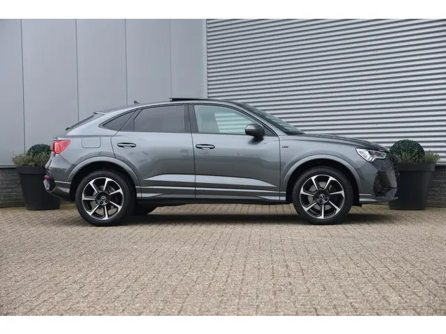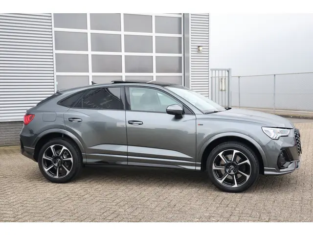 Unieke en zeer complete Audi Q3 Sportback 45TFSI e S-Line Black Edition plug in hybride met een gecontroleerde kilomerstand van slechts 44.000 kilometer in de prachtige s-line kleur Daytona grijs metallic en voorzien van vele opties waaronder:groot glazen panoramadak, schuif/kanteldak, zwart optiek pakke, sportstoelen elektrisch verstelbaar half leder/alcantara, afgevlakt multifunctioneel sportstuur, stoelverwarming, wegklapbare trekhaak 360 graden camera met topview, parkeersensoren voor en achter, lichtmetalen velgen, licht en regensensor, elektrisch verstelbare en inklapbare buitenspiegels, elektrisch verstelbare voorstoelen + memory bestuurder, akoestisch glas voorruit, adaptieve cruise control, elektrisch bedienbare achterklep, Audi phone box + smarthone interface, led koplampen + achterlichten, lendesteun verstelling, isofix, sfeerverlichting, draadloos opladen telefoon, isofix, keyless entry + go, 4x elektrische ramen, virtual cockpit, full led koplampen, led achterlichten, verschuifbare achterbank etc