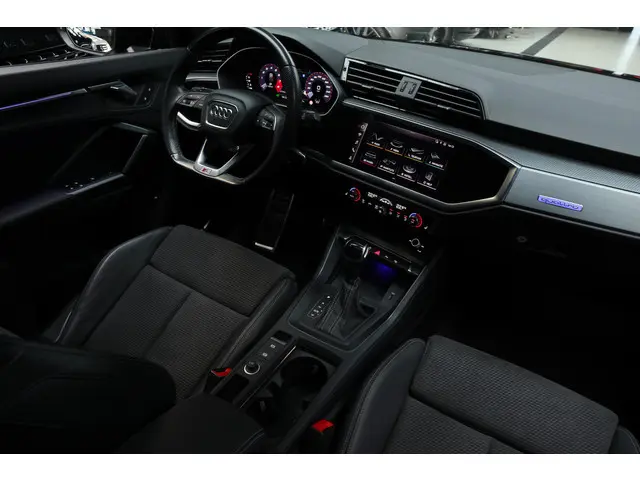 Hierbij bieden wij onze prachtige Audi Q3 Sportback 45 TFSI quattro S-line aan. Dit voertuig is dealer onderhouden en zo goed als nieuw. Complete onderhoudsdocumentatie is aanwezig.Ontspannen en zorgeloos autorijden, dat doet u met deze Audi Q3 Sportback. Deze auto wíl gewoon gezien worden: kijk maar naar de sportieve S-Line styling. De uitstekende prestaties van deze auto komen van de viercilinder benzinemotor en de automatische transmissie. De auto is uitgerust met lederen bekleding. De verwarmbare voorstoelen benadrukken nog maar eens dat we hier te maken hebben met een regelrechte verwenauto voor bestuurder en bijrijder. De sportstoelen geven u veel zitsteun. De elektrische achterklep opent met een druk op de knop, zodat u gemakkelijk toegang heeft tot de bagageruimte. Onderweg heeft u extra veel te zien dankzij het glazen panoramadak. In deze auto profiteert u onder andere ook van: 19 inch lichtmetalen velgen, Full LED koplampen, warmtewerend glas, Audi instelbaar onderstel (drive select), zwarte hemelbekleding en in delen neerklapbare achterbank.