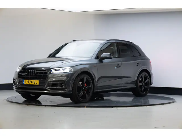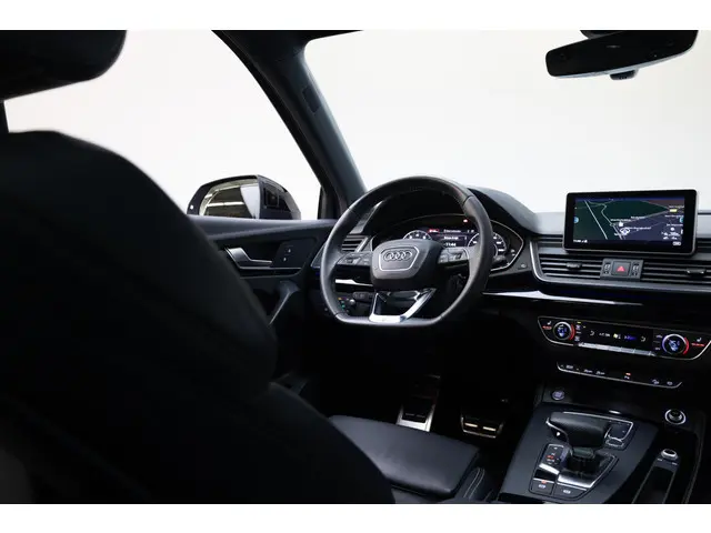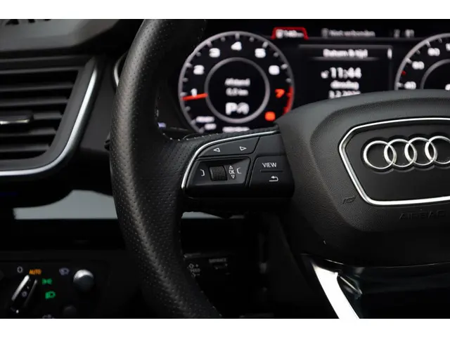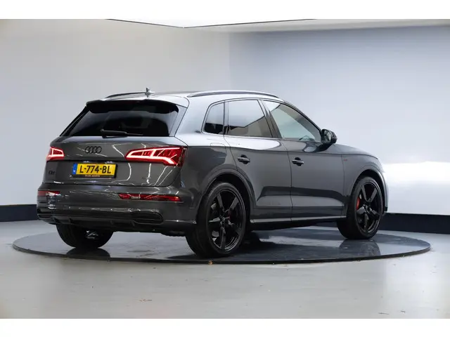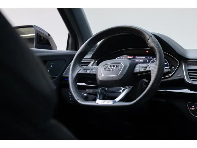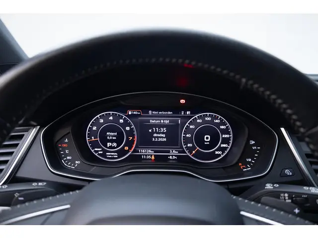 Robuust, luxe en hoogstaande technologie samengebracht in deze Audi Q5, een weerspiegeling van de excellente kwaliteit van Duitse automerken. Een hoogtepunt uit de specificatielijst van deze auto is de sportieve S-Line styling. De aandrijving van deze Audi wordt verzorgd door een viercilinder benzinemotor en een automatische transmissie. De verwarmbare voorstoelen zijn een heerlijke extra optie, waarmee je jezelf en je bijrijder een groot plezier doet. Scherpe bochten, pittige acceleraties? In de sportstoelen blijf je altijd in positie. Het interieur lijkt groter en ruimtelijker dankzij het elektrisch bedienbare glazen panoramadak. De elektrische achterklep opent met een druk op de knop, zodat jij gemakkelijk toegang heeft tot de bagageruimte. De kwaliteit van de matrix LED-verlichting geeft het gevoel dat je bij daglicht rijdt. Bij de rijke uitrusting horen ook 21 inch lichtmetalen velgen, warmtewerend glas, in delen neerklapbare achterbank, LED-achterlichten en verwarmde ruitensproeiers.Voor een goed en duidelijk overzicht onderweg is het digitale dashboard uitermate slim ingedeeld. Strak inparkeren wordt een fluitje van een cent door de achteruitrijcamera. Met adaptive cruise control houdt de auto zelfstandig afstand tot jouw voorligger. Een veiligheidsverhogende optie waarmee je comfortabel onderweg bent. Rijden-stilstaan, rijden-stilstaan. Niks is irritanter en vermoeiender dan filerijden. Daar heeft deze Audi Q5 een oplossing voor: de file assistent, die met radarmeting permanent het tempo aanpast op de voorligger. Zelfs als die stopt. Ook de akoestiek in de auto wordt optimaal benut door het high performance audiosysteem. Met navigatiesysteem met harde schijf, WIFI-hotspot, achteropkomend verkeer waarschuwing, automatische airconditioning, sportstuur met schakelpaddels en draadloos opladen is deze Audi helemaal compleet.