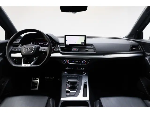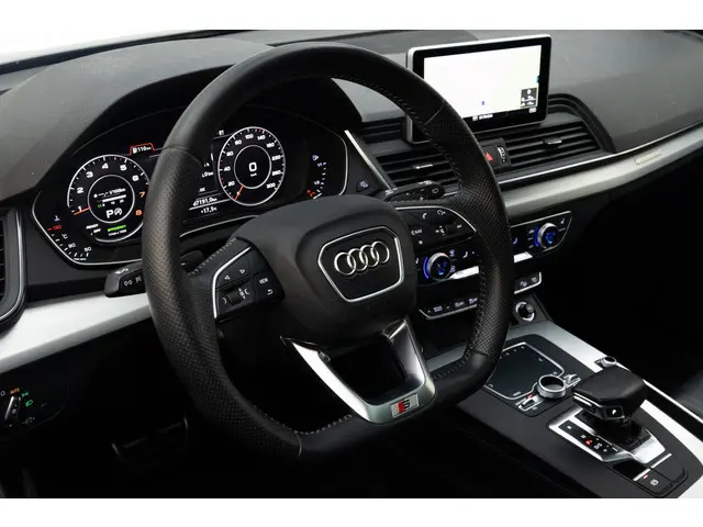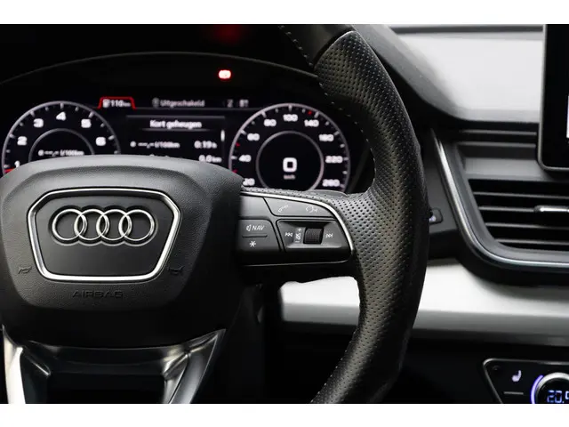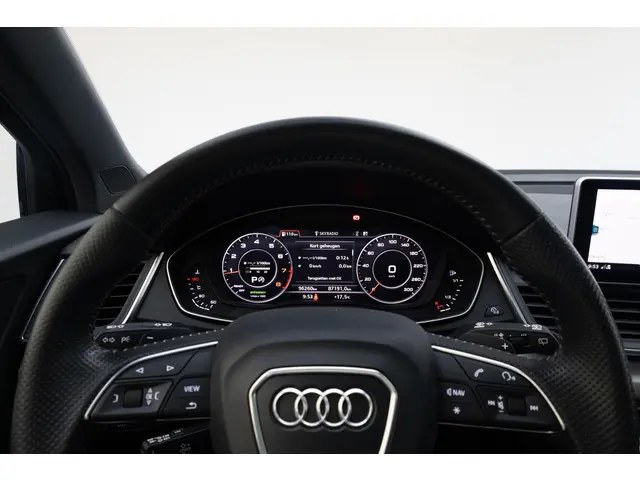 Je ziet het al aan de buitenkant en je voelt het zodra je de krachtige motor start, deze sportieve Audi Q5 is gemaakt om prestaties te leveren. We hebben het hier over een auto uit 2018, hij heeft 95730 kilometer gelopen. De S-Line styling geeft deze auto een bijzonder karakter en staat voor sportiviteit en exclusiviteit. In deze auto vind je een benzinemotor en een automatische transmissie. Licht en lucht komen onbelemmerd binnen als je het elektrisch bediende glazen panorama dak met één druk op de knop opent. En net zo gemakkelijk gaat de elektrisch bedienbare achterklep open. Kijk, en die stoelverwarming, dat is nou echt comfort. Helemaal als het buiten winters aanvoelt. Dankzij de matrix LED-verlichting geven de koplampen ook in het donker daglicht. Bij de uitrusting van deze auto horen onder meer 19 inch lichtmetalen velgen, sportonderstel, warmtewerend glas, dakspoiler, in delen neerklapbare achterbank en LED-achterlichten.Slim, efficiënt, veilig en goed geïnformeerd rijden? Het digitale dashboard vertelt je alles wat je wilt weten. Een vergeten muurtje, een verborgen paaltje? Dat gebeurt niet meer, dankzij de achteruitrijcamera. Je favoriete muziek klinkt beter dan ooit met het ingebouwde high performance audiosysteem. De kortste weg, de zuinigste weg, de snelste weg... elke weg is te vinden met het navigatiesysteem met harde schijf. De achteropkomend verkeer waarschuwing is een mooie veiligheidsoptie, die middels sensoren in de gaten houdt wat er onderweg achter je gebeurt. Extra opties op deze auto zijn: automatische airconditioning, sportstuur met schakelpaddels, draadloos opladen, regensensor, cruise control en automatisch dimmende binnenspiegel.