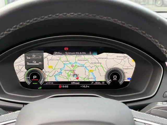 U leest alle belangrijke functies helder af dankzij het digitale dashboard. De 360 graden camera op deze auto is een innovatieve functie die de obstakels rondom de auto in beeld brengt voor een optimaal zicht. Uw smartphone is tegenwoordig de sleutel tot heel veel. Ook voor deze auto. Remote services, noemen we dat. Waar u ook bent, contact houden is een eitje. Met het full map navigatiesysteem kiest u de snelste route naar uw eindbestemming. Gauw iets googelen of passagiers relaxt een filmpje laten kijken onderweg? Geen probleem, met de ingebouwde WIFI-hotspot. Ook is de Audi uitgerust met: WIFI-hotspot, automatische airconditioning, schakelpaddles aan het stuur, DAB ontvangst, regensensor en cruise control.