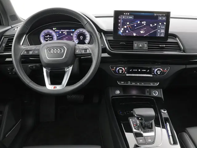 Bij Maas-De Koning doen we er alles aan om uw rijervaring zo aangenaam en zorgeloos mogelijk te maken. Bij de aanschaf van een dealeroccasion heeft u de vrijheid om te kiezen welk afleverpakket het beste aansluit bij uw wensen. Wij bieden twee pakketten: het Standaard pakket (inbegrepen) en het Approved pakket (tegen een meerprijs). Met het Approved pakket kiest u voor extra zekerheid, zoals minimaal 12 maanden garantie en een onderhoudsvrije periode van 6 maanden of 7.500 km na aflevering. Zo geniet u van maximale gemoedsrust. U bepaalt zelf welke zekerheid en service u nodig heeft, terwijl wij ervoor zorgen dat uw voertuig technisch volledig wordt klaargemaakt volgens uw voorkeuren.Je ziet het niet, maar de nieuwigheid is er nét van af. En dat maakt deze jonge Audi Q5 Sportback heel betaalbaar. Ook qua looks springt deze auto eruit, vanwege de fraaie S-Line styling. Goed voor het milieu, goed voor de portemonnee: hybride rijden biedt het beste van beide! Een lederen interieur is natuurlijk altijd een heerlijke plus. Maar wie van praktisch gemak houdt, wordt ook nog eens extra blij van het elektrisch bediende glazen panorama dak en de elektrisch bedienbare achterklep. U zit er altijd warmpjes bij door de stoelverwarming. Koude handen? Da's voorbij met het verwarmd stuurwiel. Pak aan! Verblinding van tegenliggers is er niet meer bij, dankzij de koplampen met matrix LED-verlichting. En toch de kwaliteit van daglicht in het donker! Ook is de auto voorzien van: 20 inch lichtmetalen velgen, warmtewerend glas, in delen neerklapbare achterbank, LED-achterlichten en verwarmde ruitensproeiers.