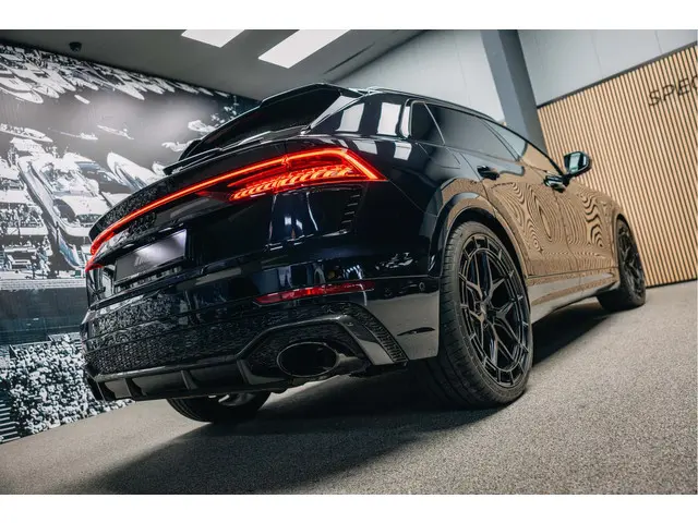 Audi RSQ8 in de kleur Deep Black Pearl, een dikke SUV met supercar-prestaties en een strakke uitstraling!Carbon accenten binnen en buiten, Vossen velgen, rode stiksels in de ledere stoelen, B&O 3D soundsystem en natuurlijk alles wat je van een RS mag verwachten.