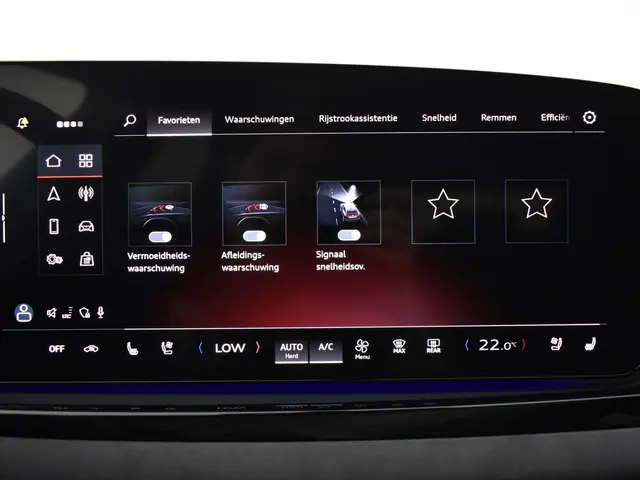 Tijdens de rit wordt u als bestuurder ondersteund door verschillende systemen die de weg en uw omgeving in de gaten houden. Net als in een straaljager kunt u altijd vooruit blijven kijken. De head-up display zorgt dat uw ogen geen seconde hoeven af te dwalen en projecteert alle benodigde info op de voorruit.. Dat de auto steeds meer taken van de bestuurder overneemt, merkt u bijvoorbeeld aan het systeem voor verkeersbord-detectie in deze auto. Ongemerkt buiten de rijstrook raken? Nee hoor, het Lane-keeping systeem waarschuwt en corrigeert. Dankzij veiligheidsvoorzieningen als dodehoekdetectie, forward collision warning system, vermoeidheidsherkenning, frontale botsbescherming en bandenspanningcontrolesysteem, bent u steeds veilig onderweg.