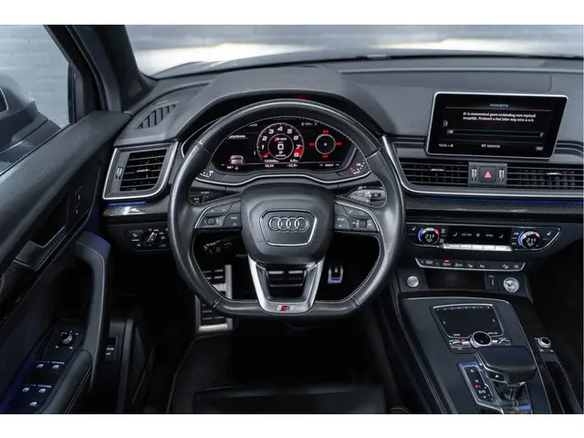 Bij het ontwerpen van de Audi SQ5 stonden uw comfort en uw veiligheid centraal. Ten opzichte van het standaard model onderscheidt deze Audi zich met sportieve S-Line styling. Dankzij de zescilinder benzinemotor en de automatische transmissie, is het autorijden snel en comfortabel. Dat noemen ze nou een ruimtelijk effect: het elektrisch bediende glazen panorama dak, dat net zo gemakkelijk open en dicht gaat als de elektrisch bedienbare achterklep. En ondertussen het ware luxegevoel van het lederen interieur. In de winter wordt het echt genieten met de stoelverwarming. Bij de uitrusting van deze Audi horen onder meer 22 inch lichtmetalen velgen, LED koplampen, sportonderstel, warmtewerend glas, dakspoiler en in delen neerklapbare achterbank.Het digitale dashboard vertelt u alles wat u wilt weten voor een slimme, comfortabele en veilige rit. Functies activeren en storingen opsporen? Bij deze auto gaat het eenvoudig via uw smartphone. Overal en altijd. Rijplezier en luisterplezier gaan hand in hand dankzij het high performance audiosysteem. Natuurlijk is er ook automatische airconditioning aanwezig. Geen parkeervak is te klein dankzij de assistentie van de parkeersensoren. Deze Audi is voorzien van navigatiesysteem met harde schijf, WIFI-hotspot, sportstuur met schakelpaddels, regensensor, cruise control en keyless entry.