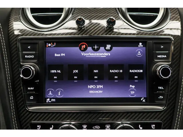 De vier camera’s rondom de auto creëren samen een onbelemmerd 360-graden uitzicht. Met adaptive cruise control houdt de auto zelfstandig afstand tot uw voorligger; een veiligheidsverhogende optie die bovendien extra comfort biedt. De onderhoudsstatus van deze auto controleert u snel en eenvoudig via uw smartphone. Het infotainmentaanbod is zeer uitgebreid. Ontspannen reizen doet u met behulp van het full-map navigatiesysteem, terwijl u muziek luistert via het audio-installatiesysteem met DAB-radio. Smartphones die draadloos kunnen opladen, halen moeiteloos een volle accu via de ingebouwde oplaadfunctie. Verder bent u in deze Bentley voorzien van een met leder bekleed dashboard, dashboard met spraakbediening, wifi-hotspot, electronic climate control, regensensor en automatisch dimmende buitenspiegels.