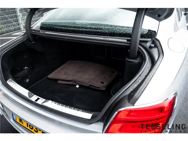 Binnenin wacht een oase van stilte en luxe, uitgevoerd in diep zwart leder en afgewerkt met authentieke materialen. De originele Bentley lamswollen vloermatten – een zeldzame optie van ruim €4.500,- – geven het interieur een bijna huiselijk comfort, met een zachtheid en warmte die je alleen in het allerhoogste segment vindt.
