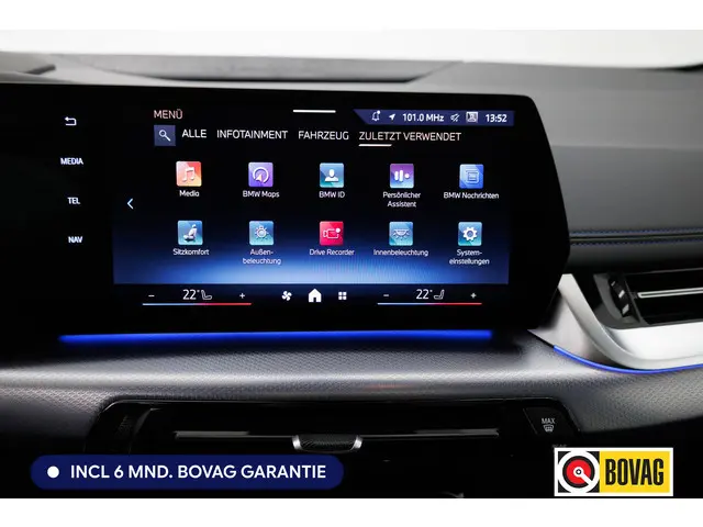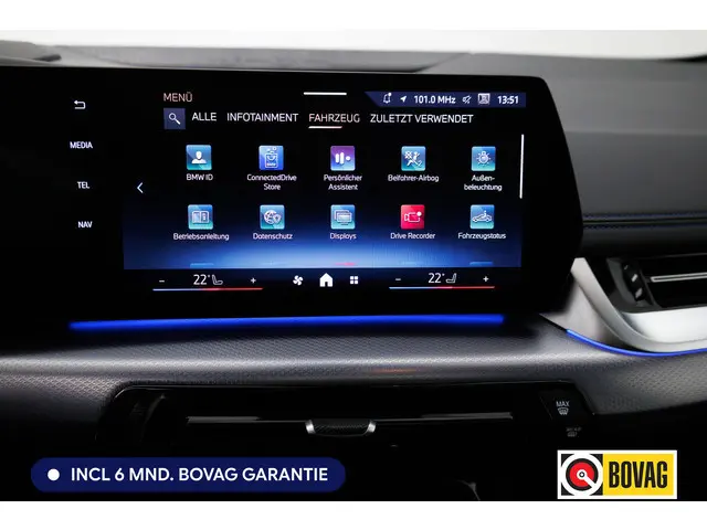 Het is het karakter van Duitse auto's dat ze zo bijzonder maakt. Een samenspel van rijcomfort, sportiviteit en veiligheid maken auto's als deze BMW 2-serie Active Tourer zo begerenswaardig. Hij heeft een benzinemotor en een automatische transmissie. Twaalf maanden per jaar een zomergevoel krijgt u van het elektrisch bediende glazen panorama dak. En 24 uur per dag het gemak van de elektrisch bedienbare achterklep. Bestuurder en bijrijder krijgen een warm welkom: de verwarmbare voorstoelen zijn bovendien voorzien van massagefunctie. Scherpe bochten, pittige acceleraties? In de sportstoelen blijft u altijd in positie. Ook 19 inch lichtmetalen velgen, LED koplampen, BMW M-sportpakket, adaptief dempingsysteem, donker getint glas achter en in delen neerklapbare achterbank zijn aan boord.Alle functies voor een veilige en zuinige rit worden overzichtelijk weergegeven op het digitale dashboard. Of u nu achteruit rijdt, parkeert of een smalle straat inslaat, de 360 graden camera op deze auto, mogelijk gemaakt door vier camera's, biedt een perfect beeld van uw omgeving. Adaptive cruise control is een comfortabele en veilige optie. Het systeem reguleert de snelheid en houdt automatisch afstand tot uw voorligger. De radio harder of zachter zetten of iemand uit uw contactenlijst bellen. Dankzij de spraakbediening doet u dit allemaal met uw stem. Locatie, motorconditie, storingen... via Connected Services krijgt u alle vitale info over de auto door. Ook handig bij pech! Deze auto is voorzien van premium audiosysteem, full map navigatiesysteem, achteropkomend verkeer waarschuwing, kruisend verkeer detectie, automatische airconditioning en schakelpaddles aan het stuur.
