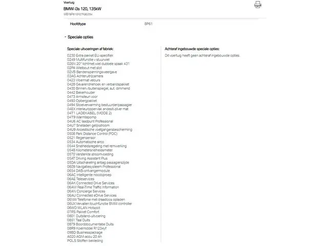 lichtgewicht elektrische auto door duurzame carbon-constructie. I3 S-versie met 184pk, sideskirts, sportonderstel/ directere sport-sturing. Adaptive cruise control+ file-assistent, Groot navigatie (Pro),30% extra rijbereik door efficiente warmtepomp, Standkachel (interieur-voorverwarminstallatie via App )stoelverwarming, draadloos telefoon laden, 20" velgen(breedte-set), "imperial blue metallic" historie aanwezig (foto's) batterij met snellaadmogelijkheid: 11 kwH AC 3-fase laden & DC 50kwh-supersnelladen met CCS-2 stekker! Nauwelijks accuslijtage bij deze BMW i3S, State of health 95% testrapport aanwezig. WLTP rijbereik 300-350km,. 4x Nieuwe Bridgestone ecopia banden. Wij bieden u diverse aflever-/ extra garantiepakketten.Meer informatie