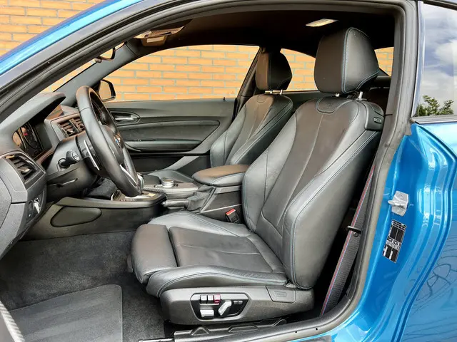 Wie zei daar dat er geen emotie meer in auto's zit? Achter het stuur van deze BMW 2-serie Coupé kunt u het nog steeds ervaren, kilometer na kilometer. Met zijn benzinemotor en automatische transmissie is dit een prima auto voor nog vele kilometers. Met zijn lederen bekleding is deze BMW comfortabel en stijlvol. U past de stoelen moeiteloos aan, ze zijn elektrisch in te stellen en hebben bovendien een geheugen. Bij de zeer complete uitrusting van deze auto behoren ook 19 inch lichtmetalen velgen, dynamisch onderstel, donker getint glas achter, zwarte hemelbekleding, led-achterlichten, verwarmde ruitensproeiers, elektrisch bedienbare ramen, elektrisch inklapbare buitenspiegels, led-dagrijverlichting en in delen neerklapbare achterbank.Geen betere plek om naar goede muziek te luisteren dan in de auto. Daarom treft u hier het high performance audiosysteem aan! Natuurlijk is het systeem ook voorzien van: connected drive services, navigatiesysteem met harde schijf, DAB ontvangst, multifunctioneel sportstuur, dashboard met spraakbediening en achteruitrijcamera. Climate control links en rechts gescheiden verwarmt of koelt het interieur met een druk op de knop. De auto neemt u werk uit handen doordat hij zelf veel in de gaten houdt. Een regensensor en een automatisch inschakelbare verlichting nemen waar wanneer de ruitenwissers en het licht aan moeten. Op de plaats van bestemming helpen de parkeersensoren achter u om gemakkelijk en schadevrij in te parkeren. Ook over uw schouder ziet u onderweg niet alles wat er aan de achterzijde gebeurt. Daarom heeft deze BMW 2-serie Coupé een achteropkomend verkeer waarschuwing. Met de keyless start hoeft u alleen de elektronische token op zak te hebben om in te stappen en te starten. Sleutels niet meer nodig! Wat u ook in deze auto kunt vinden zijn met leder bekleed dashboard, schakel flippers aan het stuur, automatisch dimmende buitenspiegels, boordcomputer, isofix-aansluiting en centrale deurvergrendeling met afstandsbediening.