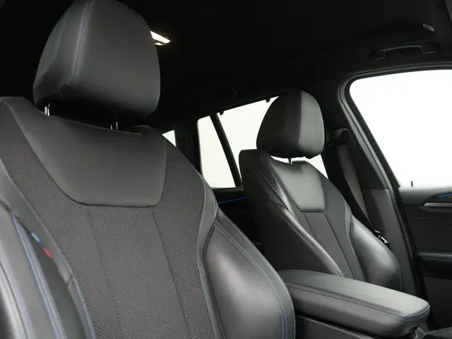 BMW X3 xDrive30e M Sport Plug In Hybrid 293pk Dealer O.H. PHEV | Trekhaak Af Fabriek | Adaptive Cruise | Head Up | 360 Camera | Harman/Kardon | Adaptief Onderstel | Lederen Sportstoelen Memory & Verwarmd | Sfeerverlichting | Keyless | Blis |BMW maakt rijden geweldig. Een prachtmerk met een indrukwekkende historie die nog steeds actueel is. Een solide hybride: zowel een elektromotor als een verbrandingsmotor voor maximaal rijplezier en minimale milieubelasting. Wat trekt u meer aan: een lederen interieur of een elektrisch bedienbare achterklep? Wacht, u hoeft niet te kiezen. Deze auto heeft het allebei! Dankzij de elektrische stoelbediening is het gemakkelijk om de optimale zitpositie te vinden. Natuurlijk behoren 19 inch lichtmetalen velgen, LED koplampen, sportonderstel, halflederen bekleding, warmtewerend glas en zwarte hemelbekleding ook tot de uitrusting van deze complete auto.