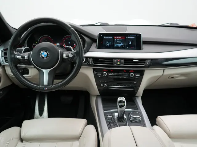 BMW X5 xDrive35i M Sport Edition 306pk | Panodak | Trekhaak af Fabriek | Adaptive Cruise | 360 Camera | Apple Carplay | Head Up | Harman Kardon | Stuurverwarming | 20"L.M |Deze goed onderhouden BMW X5 heeft nog maar weinig op de teller staan. Een jonkie voor een oude prijs! Een zescilinder benzinemotor en een automatische transmissie zorgen voor de uitstekende prestaties van deze auto. Elke wegdek voelt aan als een biljartlaken dankzij de luchtvering. De leren bekleding straalt klasse en goede smaak uit. Zit u goed? De stoelen zijn eenvoudig instelbaar dankzij de elektrische bediening met geheugen. Voor extra lichtinval en een frisse luchtstroom zorgt het elektrisch bediende panoramadak. Een praktische extra is de elektrisch bedienbare achterklep die opent en sluit met een druk op de knop. Bij de zeer complete uitrusting van deze auto behoren ook 20 inch lichtmetalen velgen, LED koplampen, adaptief dempingsysteem, warmtewerend glas, in delen neerklapbare achterbank en LED-achterlichten.