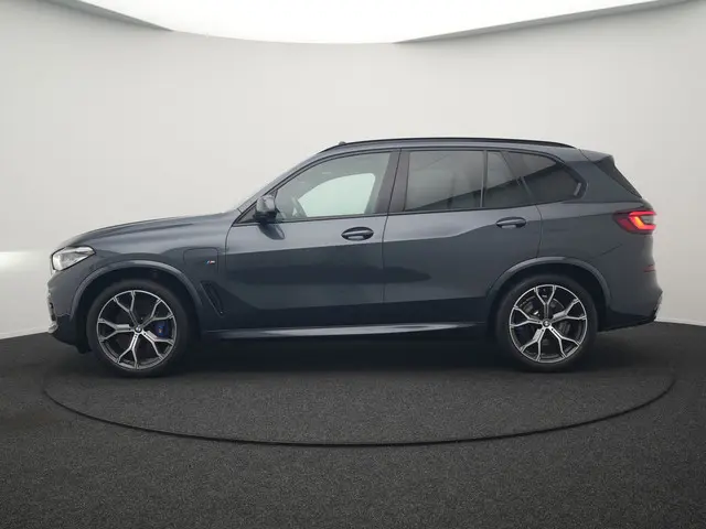 BMW X5 xDrive45e M Sport Plug In Hybrid 395pk Dealer O.H. PHEV | Trekhaak Af Fabriek | Panodak | Soft Close | Luchtvering | 360 Camera | Adaptive Cruise | Harman & Kardon | Lederen Comfortstoelen Memory & Verwarmd | Blis | M Sportstuur Verwarmd |Het is een mooie auto, deze BMW X5 uit 2021, en hij heeft 113247 kilometer gelopen. De onderhoudsgeschiedenis is bekend. De aandrijving wordt verzorgd door een zescilinder motor en een automatische transmissie. Automatische luchtvering absorbeert oneffenheden in het wegdek en vergroot het rijcomfort. Comfort? Luxe? Stijl? Allemaal meegeleverd in de vorm van het lederen interieur. Neem plaats op de comfortabele stoelen. Dankzij de elektrische bediening en het geheugen is het eenvoudig om hierin de beste zitpositie te vinden. Hoogstaande comfortfuncties zoals stoelverwarming, verwarmbare achterbank en een verwarmbaar stuur maken deze auto tot een uitzonderlijke keuze. Licht, luxe en gemak komen samen in de vorm van het elektrische bediende glazen panoramadak. De bagageruimte is toegankelijk via een comfortverhogende elektrische achterklep. Tot de uitrusting van deze BMW behoren ook 21 inch lichtmetalen velgen, LED koplampen, BMW M-sportpakket, adaptief dempingsysteem, donker getint glas achter en in delen neerklapbare achterbank.