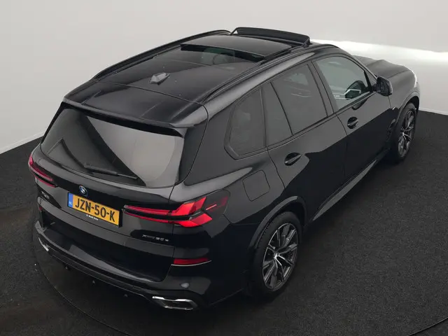 BMW X5 xDrive50e M Sport Plug In Hybride 490pk Dealer O.H. PHEV | Panodak | Luchtvering | Adaptive Cruise | Head Up | 360 Camera | Harman / Kardon | Lederen Sportstoelen Memory & Verwarmd | Sfeerverlichting | Apple Carplay | Keyless | Blis | 20"L.M |Er zijn mensen die zeggen: het merk maakt me niet uit zolang het maar Duits is. En gelijk hebben ze. Als u een laag brandstofverbruik en goede prestaties belangrijk vindt, dan bent u uitstekend bediend met de zescilinder benzinemotor. De luchtvering levert niet alleen meer comfort, maar draagt tevens bij aan de veiligheid. Elke rit in deze BMW X5 heeft een tikje meer, dankzij het lederen interieur. Deze BMW X5 heeft verwarmbare voorstoelen, voor zowel bestuurder als bijrijder. Zijwaartse g-krachten worden solide opgevangen door de sportstoelen. De achterklep opent automatisch met een druk op de knop. Handig als u met volle handen staat. Bij de rijke uitrusting horen ook 19 inch lichtmetalen velgen, LED koplampen, in delen neerklapbare achterbank, LED-achterlichten, verstelbare lendensteunen en snelheidsafhankelijke stuurbekrachtiging.