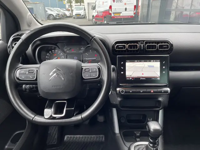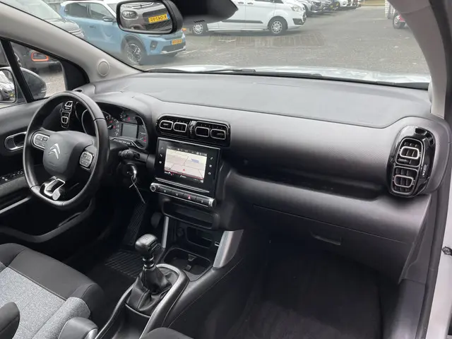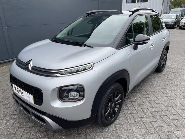 Met zijn dynamische eigenschappen belooft deze Citroën C3 Aircross u een heleboel rijplezier. Hij is ontwikkeld op een geavanceerd onderstel en biedt altijd een veilig weggedrag. De SUV haalt zijn aandrijving uit een krachtige driecilinder benzinemotor. Tot de uitrusting behoren ook LED-dagrijverlichting, donker getint glas achter, in delen neerklapbare achterbank en snelheidsafhankelijke stuurbekrachtiging.Ongelukken of parkeerschade? Dat gebeurt u niet meer, met de achteruitrijcamera. Ingericht op Connected Services, voor een nog veiligere en comfortabelere rit. U kunt het audiosysteem met DAB-ontvangst en het navigatiesysteem bedienen met de knoppen op het stuur of zelf met uw stem. De kans op een kop-staart botsing wordt sterk gereduceerd door het systeem van achteropkomend verkeer waarschuwing. Bij de luxe van deze auto hoort ook automatische airconditioning. En dan is deze auto ook nog eens voorzien van regensensor, cruise control, automatisch dimmende binnenspiegel, lederen stuur, isofix-aansluiting en centrale deurvergrendeling met afstandsbediening.