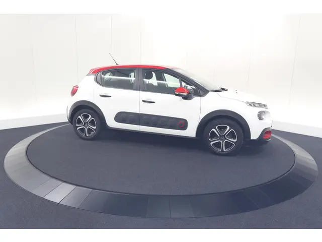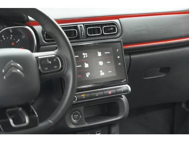 Pragmatisch en veilig als deze auto is, beschikt hij over diverse veiligheidssystemen. Dat de auto steeds meer taken van de bestuurder overneemt, merkt u bijvoorbeeld aan het systeem voor verkeersbord-detectie in deze Citroen. Deze Citroen C3 is ook behulpzaam als het gaat om een rechte koers. Het Lane-keeping systeem signaleert en corrigeert als u onbedoeld de rijstrooklijnen dreigt te overschrijden. Het systeem voor vermoeidheidsherkenning neemt het waar als uw concentratie verslapt en geeft u dan een waarschuwing. Bovenop deze veiligheidsfeatures heeft deze Citroen bovendien dodehoekdetectie, brake assist en bandenspanningcontrolesysteem.