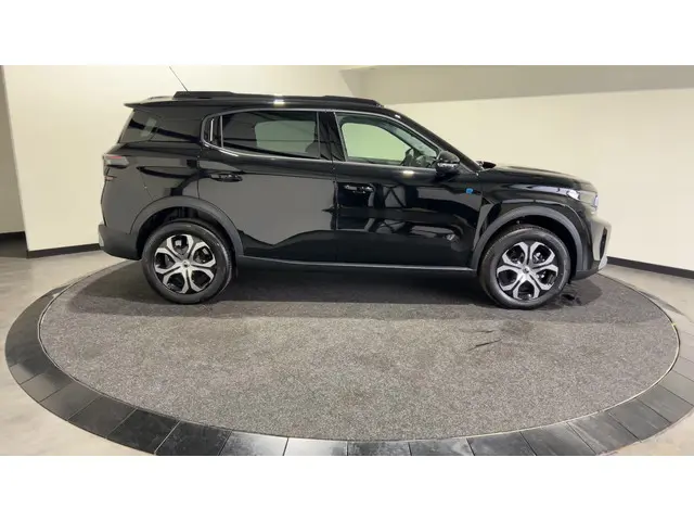 Duurzaam en dynamisch, de Citroën Ë-C3 Aircross verenigt deze twee uitersten in zich. Dit is een auto uit 2026, er staat 59 kilometer op de teller. Gas geven is er met de elektromotor niet meer bij. Stil snelheid maken wel! Neem plaats achter het stuur en ervaar de weldaad van de comfortstoelen. De uitmonstering van deze auto wordt gecompleteerd door onder meer LED koplampen, adaptief dempingsysteem, dakspoiler, donker getint glas achter en in delen neerklapbare achterbank.Omdat u nou eenmaal geen ogen in uw achterhoofd heeft, is het altijd lastig om achteruit te rijden zonder brokken te maken. De achteruitrijcamera lost dat probleem op. Locatie, motorconditie, storingen... via Connected Services krijgt u alle vitale info over de auto door. Ook handig bij pech! Of het buiten nu warm is of koud, dankzij electronic climate control is het binnen altijd behaaglijk. Volumeknoppen, zenderschakelen, muten... U doet alles met de audiobediening op het stuur. Veilig en gemakkelijk. De DAB-ontvanger zorgt voor een ruime keuze uit digitale radiozenders en een kristalheldere geluidsweergave. Met regensensor, cruise control, centrale deurvergrendeling met afstandsbediening en verstelbaar stuur is deze auto helemaal compleet.