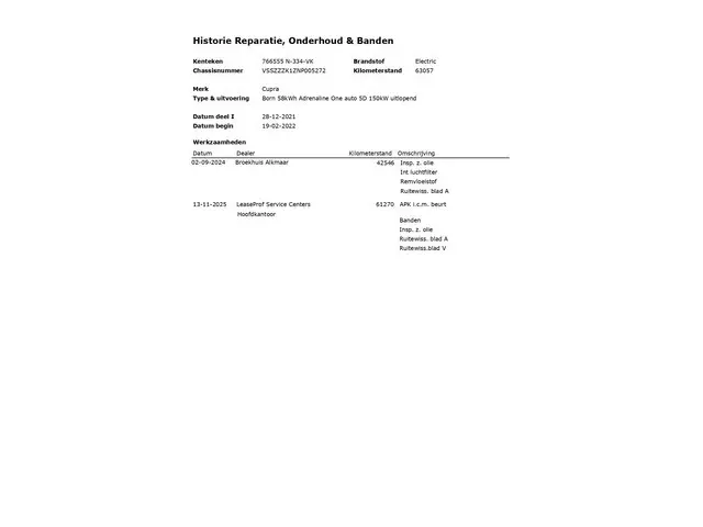 Voertuiggegevens van deze Cupra Born