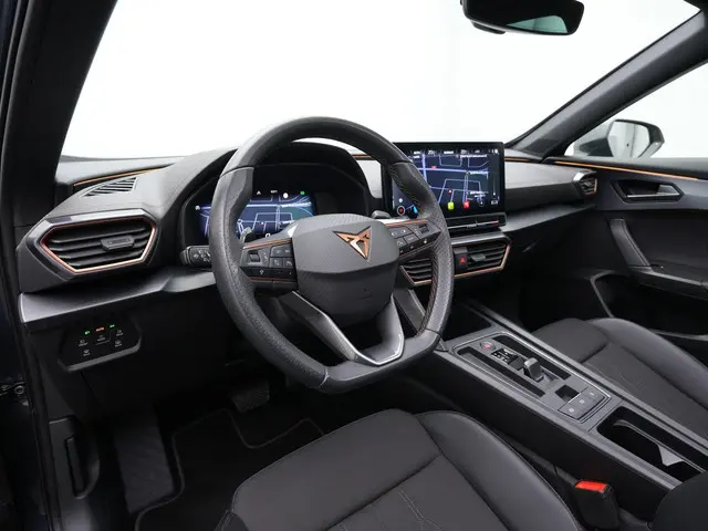 Achter het stuur ervaar je direct het comfortabele en solide karakter van de Formentor. De sportstoelen bieden goede ondersteuning, terwijl het verwarmbare stuurwiel en de verwarmbare voorruit zorgen voor extra comfort tijdens koude dagen. Dankzij adaptive cruise control met Stop & Go en de uitgebreide assistentiesystemen zoals Lane Assist Plus en Travel Assist rijd je ontspannen, ook in druk verkeer of op lange afstanden. De achteruitrijcamera en dodehoekassistent maken manoeuvreren eenvoudig en veilig, terwijl de elektrische achterklep met voetbediening het dagelijks gebruik net dat stukje praktischer maakt.