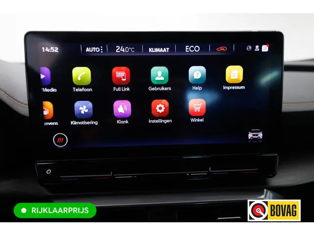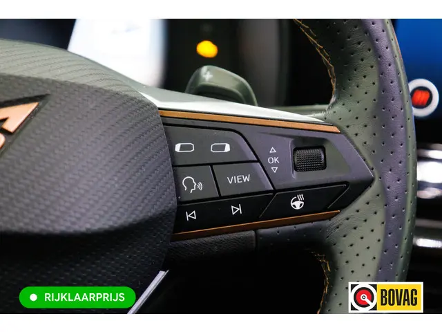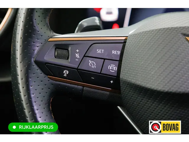Deze CUPRA is voorzien van verschillende intelligente veiligheidsvoorzieningen. Ze kijken tijdens het rijden als het ware met u mee, ze signaleren potentieel gevaarlijke situaties en in een aantal gevallen kunnen ze ook ingrijpen. In het instrumentarium laat de verkeersborddetectie de actuele verkeersborden zien. Met het Lane-keeping systeem komt u nooit per ongeluk buiten de rijstrook. Forward collision warning is een automatisch waarschuwingssysteem dat direct in werking treedt bij gevaar voor een kop-staartbotsing. Met voorzieningen als dodehoekdetectie, hill hold functie, vermoeidheidsherkenning, autonoom remsysteem en bandenspanningcontrolesysteem, bent u altijd veilig onderweg.
