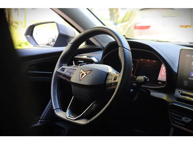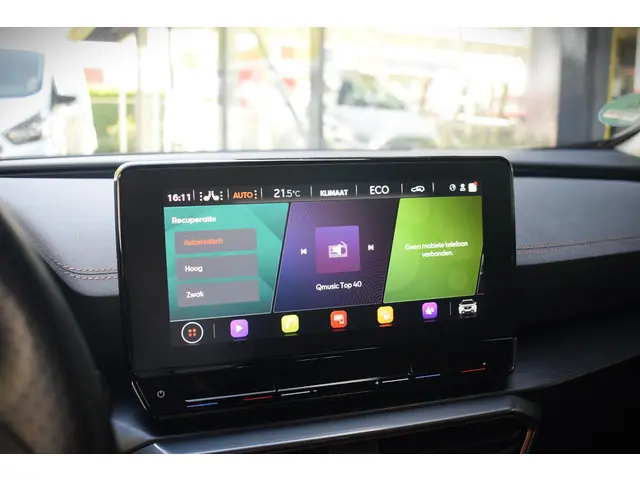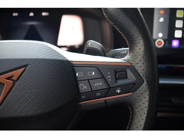 Deze CUPRA Formentor staat voor u klaar. Een geweldige, nog jonge occasion die goed is voor gemakkelijk nog een tonnetje of twee op de teller. Dankzij zijn verbrandingsmotor en de elektromotor is het brandstofverbruik van deze auto laag in zijn klasse. In de verwarmbare voorstoelen zitten is elke keer een welkom gevoel. Voor het pittige uiterlijk én goed gesteund zitten zorgen de sportstoelen. Beknibbelen op comfort is er niet bij met deze CUPRA Formentor. Hij is zelfs voorzien van een verwarmd stuurwiel! In deze CUPRA profiteert u onder andere ook van: Full LED koplampen, extra getint glas, in delen neerklapbare achterbank, LED-achterlichten, verstelbare lendensteunen en snelheidsafhankelijke stuurbekrachtiging.Alle functies die u onderweg nodig heeft, worden permanent geregistreerd en zijn afleesbaar op het digitale dashboard. U ziet geen paaltje meer over het hoofd dankzij de achteruitrijcamera. Als u de adaptive cruise control inschakelt, regelt de auto zelf de snelheid en de afstand tot de auto voor u. De elektrisch inklapbare trekhaak is onzichtbaar gemonteerd. Met een eenvoudige beweging verschijnt de trekhaak zodra u deze nodig hebt. Oliepeil, bandenspanning, sloten en andere functies zijn via een speciale app overal te checken dankzij Connected Services. U bent in deze CUPRA ook voorzien van dashboard met spraakbediening, full map navigatiesysteem, automatische airconditioning, draadloos opladen, DAB ontvangst en regensensor.