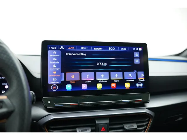 Zoals u mag verwachten van deze CUPRA Formentor is hij uitgerust met een reeks aan actieve veiligheidssystemen. Tijdens de rit hebt u altijd een bijrijder, want de verkeersbord-detectie leest de borden langs de weg en projecteert ze voor u op het instrumentarium. Het Lane-keeping systeem doet precies wat nodig is: waarschuwen en corrigeren bij onbedoelde overschrijding van de rijstrooklijnen. Mindert een voorligger onverwachts te veel vaart, dan komt de forward collision warning in actie en waarschuwt meteen. De auto is ook uitgerust met dodehoekdetectie, hill hold functie, vermoeidheidsherkenning, autonoom remsysteem en bandenspanningcontrolesysteem.