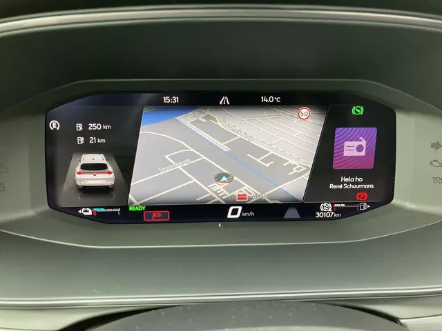 Het digitale dashboard vertelt u alles wat u wilt weten voor een slimme, comfortabele en veilige rit. De achteruitrijcamera brengt precies in zicht wat zich achter u bevindt en toont een glashelder beeld op hoge resolutie. Een geluidssignaal waarschuwt hoeveel ruimte u nog heeft. Als u de adaptive cruise control inschakelt, regelt de auto zelf de snelheid en de afstand tot de auto voor u. Filerijden? Doodvermoeiend. Daarom helpt de file assistent zo nodig een handje. Door automatisch afstand te houden, en te stoppen als uw voorligger stilstaat. De meest gebruikte voertuigfuncties laten zich met behulp van uw stem bedienen. Deze CUPRA is voorzien van connected drive services, full map navigatiesysteem, automatische airconditioning, draadloos opladen, DAB ontvangst en regensensor.