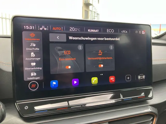 U geniet nog meer van het rijden met uw CUPRA omdat u wordt beschermd door intelligente veiligheidssystemen. In het instrumentarium laat de verkeersborddetectie de actuele verkeersborden zien. Mooi binnen de lijnen van de rijstrook blijven? Het Lane-keeping systeem helpt altijd een handje. Het risico van een kop-staartbotsing wordt aanzienlijk verminderd door de forward collision warning. Ook helpen het dodehoekdetectie, front assist, hill hold functie, vermoeidheidsherkenning, autonoom remsysteem en bandenspanningcontrolesysteem, uw rit tot een veilige rit te maken.