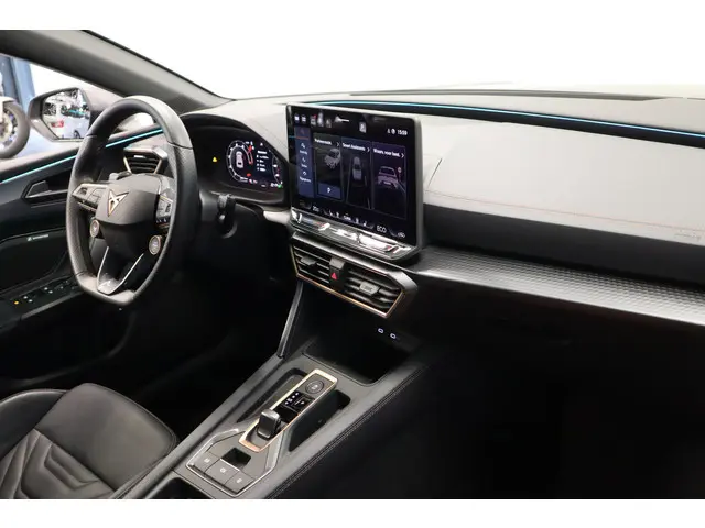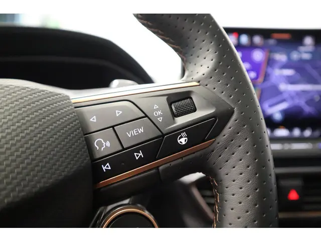 De CUPRA Leon, zoals dit exemplaar uit 2025, valt op door de combinatie van zijn ingetogen design, zijn ruime interieur en zijn uitstekende rijeigenschappen. Deze auto heeft 14772 kilometer gelopen. Deze CUPRA Leon is voorzien van een hybride motor. Dat betekent dat de aandrijving wordt geleverd door zowel een brandstofmotor als een elektromotor, die slim samenwerken om zuinig over de weg te gaan. Stoelverwarming maakt deel uit van de rijke uitrusting van deze auto. Zicht, licht en toch dicht! Een geweldige rijervaring met het glazen panoramadak. De matrix LED-verlichting is het allernieuwste op het gebied van autoverlichting. Altijd maximaal licht op de weg, zonder tegenliggers te hinderen! Verder is de CUPRA uitgerust met: adaptief dempingsysteem, donker getint glas achter, in delen neerklapbare achterbank, LED-achterlichten, verstelbare lendensteunen en snelheidsafhankelijke stuurbekrachtiging.Met het digitale dashboard heeft u essentiële info in beeld. Altijd, overal. Ongelukken of parkeerschade? Dat gebeurt u niet meer, met de achteruitrijcamera. Adaptive cruise control is een comfortabele en veilige optie. Het systeem reguleert de snelheid en houdt automatisch afstand tot uw voorligger. In de file rijden vreet concentratie. Daarom komt de file assistent te hulp om veilig afstand te houden en automatisch te stoppen als uw voorligger stilstaat. Waar u zelf ook bent, u staat altijd in contact met de auto via de app op uw smartphone. Zo controleert u uiteenlopende functies, ook op afstand. Met dashboard met spraakbediening, full map navigatiesysteem, WIFI-hotspot, achteropkomend verkeer waarschuwing, electronic climate control en schakelpaddles aan het stuur is deze auto helemaal compleet.