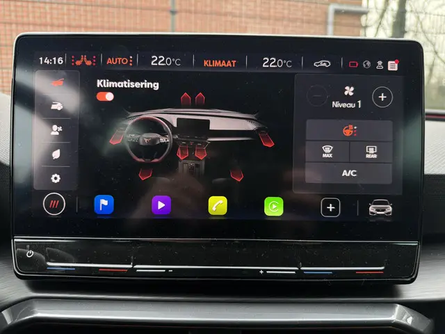 Stijlvolle en sportieve CUPRA Leon eTSI met 150 pk in de complete Business Edition uitvoering. Voorzien van onder andere een achteruitrijcamera, Apple CarPlay en een half lederen interieur. Deze auto combineert dynamische prestaties met comfort en moderne technologie.Compleet met vele opties en extra`s o.a: volledig digitaal instrumentenpaneel, entertainment systeem navigatie/bluetooth/audio, half leder interieur, sportstoelen, stoel verwarming, multifunctioneel CUPRA sport stuurwiel incl. stuurwiel verwarming, automatische airco, cruise-control, LED verlichting met LED koplampen, parkeer sensoren voor en achter, Parkeercamera, buitenspiegels elektrisch inklapbaar, LED verlichting, interieur sfeer verlichting, zwarte hemelbekleding, lichtmetalen velgen, en nog veel meer!