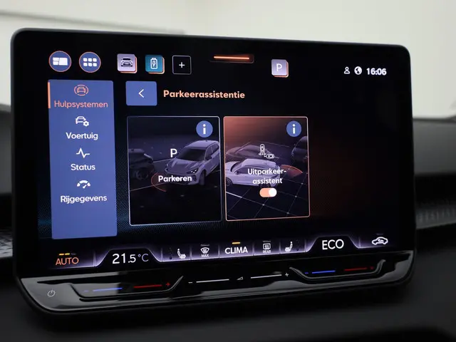 Zoals u mag verwachten van deze CUPRA Terramar is hij uitgerust met een reeks aan actieve veiligheidssystemen. Rijden met het overzicht van een straaljagerpiloot? De praktische en veilige head-up display projecteert dashboardinfo binnen uw gezichtsveld, zodat u uw blik nooit hoeft te verplaatsen. Oog op de weg! In het instrumentarium laat de verkeersborddetectie de actuele verkeersborden zien. Het Lane-keeping systeem garandeert dat u zich niet onverhoeds buiten de lijnen van de rijstrook begeeft. In deze CUPRA vinden we verder een dodehoekdetectie, front assist, forward collision warning system, hill hold functie, vermoeidheidsherkenning en frontale botsbescherming.