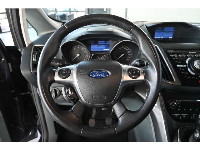 Een keurige auto, dat is deze Ford C-Max, die 159731 kilometer heeft gelopen. De krachtige benzinemotor van deze auto is gekoppeld aan een handgeschakelde zesversnellingsbak. Bij de uitrusting van deze Ford horen onder meer 17 inch lichtmetalen velgen, elektrisch inklapbare buitenspiegels, in hoogte verstelbare passagiersstoel, verstelbare lendensteunen, elektrisch bediende ramen en metallic lak.De achteruitrijcamera geeft u duidelijk zicht op de ruimte achter de auto. Dankzij de spraaksturing bedient u verschillende functies zonder uw handen van het stuur te halen. Er is geen bestemming die het aanwezige full map navigatiesysteem niet kent. Dat rijdt lekker! Met de automatische airconditioning selecteert u de gewenste temperatuur. Het systeem doet de rest. Om de veiligheid onderweg te verhogen, heeft deze Ford zowel een automatisch inschakelbare verlichting als een regensensor aan boord, zodat hij zelf de verlichting en de ruitenwissers kan inschakelen. En deze auto heeft ook cruise control, automatisch dimmende binnenspiegel en lederen stuur en versnellingspook als standaard uitrusting.