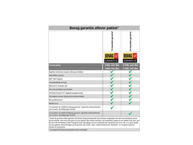 12 maanden Bovag garantie (incl. 21% BTW) - €995,-