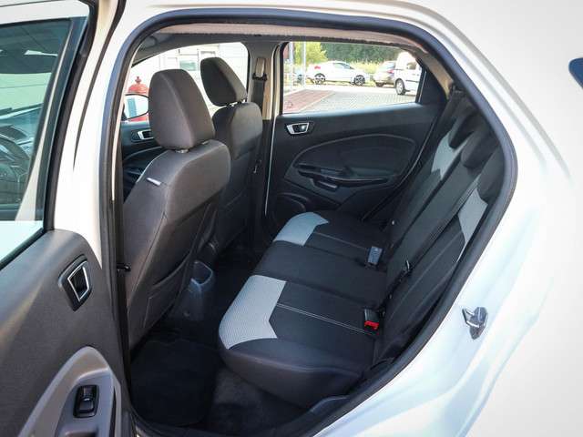 Hij is sportief en avontuurlijk, maar hij brengt u ook met het grootste gemak door druk verkeer. De Ford EcoSport die we hier hebben, heeft 66837 kilometer gelopen, het bouwjaar is 2014. Deze SUV wordt aangedreven door een krachtige driecilinder benzinemotor. Verder is de Ford uitgerust met: 16 inch lichtmetalen velgen, aluminium dakrailing, in delen neerklapbare achterbank, elektrisch verstelbare buitenspiegels, verstelbare lendensteunen en elektrisch bediende ramen.Bij de luxe van deze auto hoort ook automatische airconditioning. Een prettige optie is de keyless entry, die ervoor zorgt dat de Ford EcoSport automatisch van het slot gaat als u dichtbij komt. Ook is de Ford uitgerust met: lederen stuur en boordcomputer.