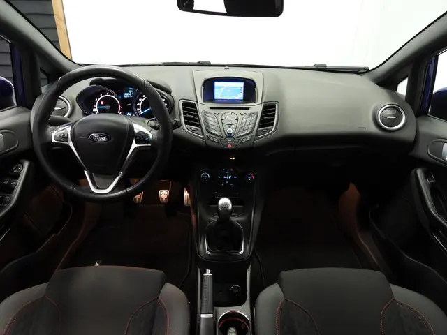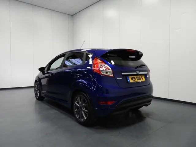 Van uw nieuwe auto verlangt u rijplezier, maar ook optimaal comfort en veiligheid. Daarom is de Ford Fiesta de auto die u zoekt. Met zijn benzinemotor en handgeschakelde vijfversnellingsbak is dit een prima auto voor nog vele kilometers. Een beetje luxe is nooit weg, toch? Vandaar de stoelverwarming! Natuurlijk behoren 17 inch lichtmetalen velgen, sportonderstel, LED-dagrijverlichting, extra getint glas, in delen neerklapbare achterbank en LED-achterlichten ook tot de uitrusting van deze complete auto.Een handige optie is de achteruitrijcamera. Achteruitrijden, inparkeren en manoeuvreren gaat gemakkelijker dan ooit. U kunt het audiosysteem en het navigatiesysteem bedienen met de knoppen op het stuur of zelfs met uw stem. Dankzij climate control is het interieur behaaglijk warm of verfrissend koel. De automatisch inschakelbare verlichting en regensensor zorgen dat onderweg automatisch de verlichting en de ruitenwissers worden ingeschakeld. Daarmee nemen ze u veel werk uit handen. Deze Ford is bovendien voorzien van cruise control. Dus comfortabel en zuinig rijden verzekerd! Wat u ook in deze auto kunt vinden zijn keyless entry, automatisch dimmende binnenspiegel, isofix-aansluiting, centrale deurvergrendeling met afstandsbediening, boordcomputer en lederen versnellingspook.