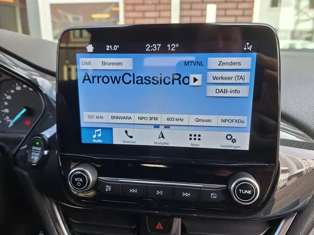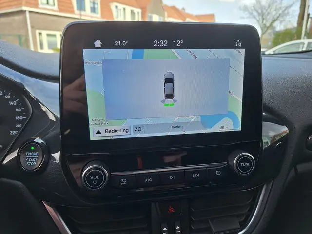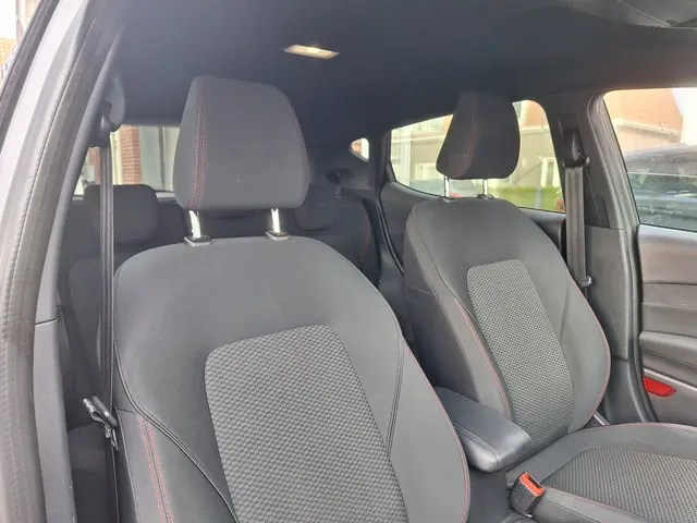 Dankzij hoogwaardige techniek en verschillende veiligheidssystemen, biedt deze sportieve Ford Fiesta ST-Line u optimale veiligheid en comfort tijdens iedere rit. In deze auto vindt u een benzinemotor en een handgeschakelde zesversnellingsbak. Chauffeur en bijrijder zitten stabiel in de scherpe bochten door de sportstoelen. Met Apple CarPlay (voor iPhone) en Android Auto (voor Android) gebruik je navigatie, muziek en berichten veilig via het scherm van je auto. Bediening gaat eenvoudig via spraak, touchscreen of knoppen. Slim, veilig en handig onderweg. Bij de uitrusting van deze auto horen onder meer 17 inch lichtmetalen velgen, sportonderstel, adaptieve mistlampen, donker getint glas achter, in delen neerklapbare achterbank en verstelbare lendensteunen.Deze Ford Fiesta is voorzien van remote services. Via uw smartphone bedient u diverse functies ook op afstand en krijgt u informatie over de status van uw auto. U kunt het audio-installatiesysteem met DAB-ontvangst en het navigatiesysteem bedienen met de knoppen op het stuur of zelf met uw stem. De automatische airconditioning zorgt voor een behaaglijk klimaat in de auto. Liever gepiep dan gekraak? Dan zult u blij zijn met de aanwezige parkeersensoren! Lange stukken vermoeiend? Niet met de cruise control! Ook sportstuurwiel, centrale deurvergrendeling met afstandsbediening en boordcomputer zijn aan boord.