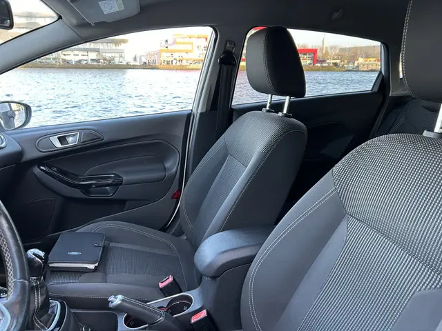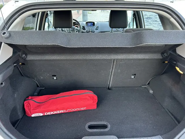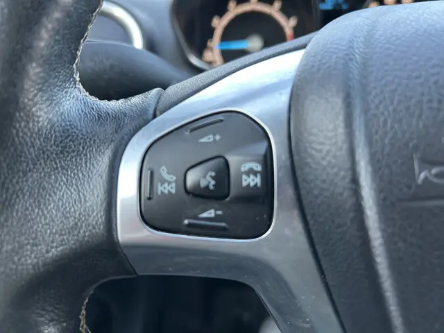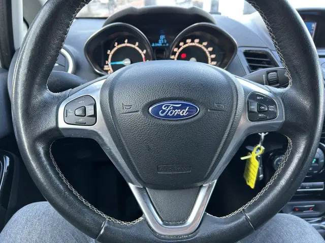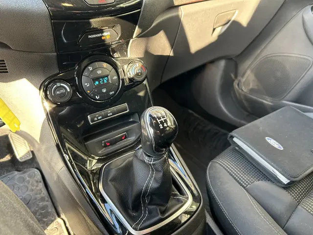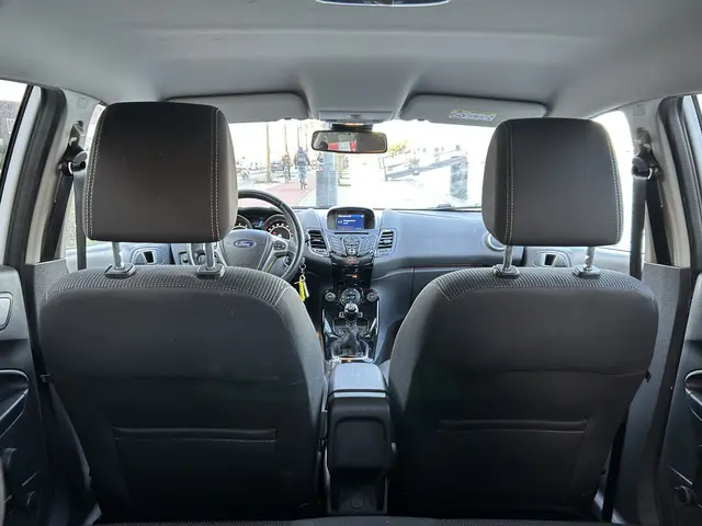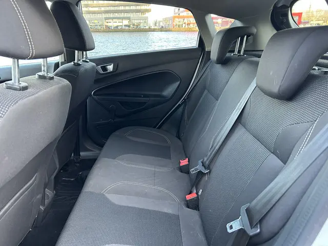 Het karaktervolle uiterlijk van de Ford Fiesta doet niets af aan het feit dat dit een comfortabele en bijzonder praktische auto is. De aandrijving van deze Ford wordt verzorgd door een driecilinder benzinemotor en een handgeschakelde vijfversnellingsbak. Ook 16 inch lichtmetalen velgen, led-dagrijverlichting, donker getint glas achter en in delen neerklapbare achterbank horen tot de voorzieningen op deze auto.Kies de muziek waarvan u houdt, dankzij de DAB-radio klinkt het altijd geweldig. Intussen bedient u het audio-installatiesysteem en het full map navigatiesysteem met de knoppen op het stuur of met uw stem. Automatische airconditioning verwarmt of koelt het interieur met een druk op de knop. Geen parkeervak is te klein dankzij de assistentie van de parkeersensoren. In deze Ford kunt u zich concentreren op het verkeer, terwijl de auto de omgeving voor u in de gaten houdt. Een automatisch inschakelbare verlichting zorgt dat de verlichting aangaat als het donkerder wordt - in tunnels bijvoorbeeld - en de regensensor schakelt de ruitenwissers in als het nodig is. U hoeft er niets aan te doen. U bedient de cruise control eenvoudig zonder uw handen van het stuur te halen. De uitrusting van deze Ford is met buitentemperatuurmeter, automatisch dimmende binnenspiegel, isofix-aansluiting, centrale deurvergrendeling met afstandsbediening, bagage afdekhoes en boordcomputer behoorlijk compleet.